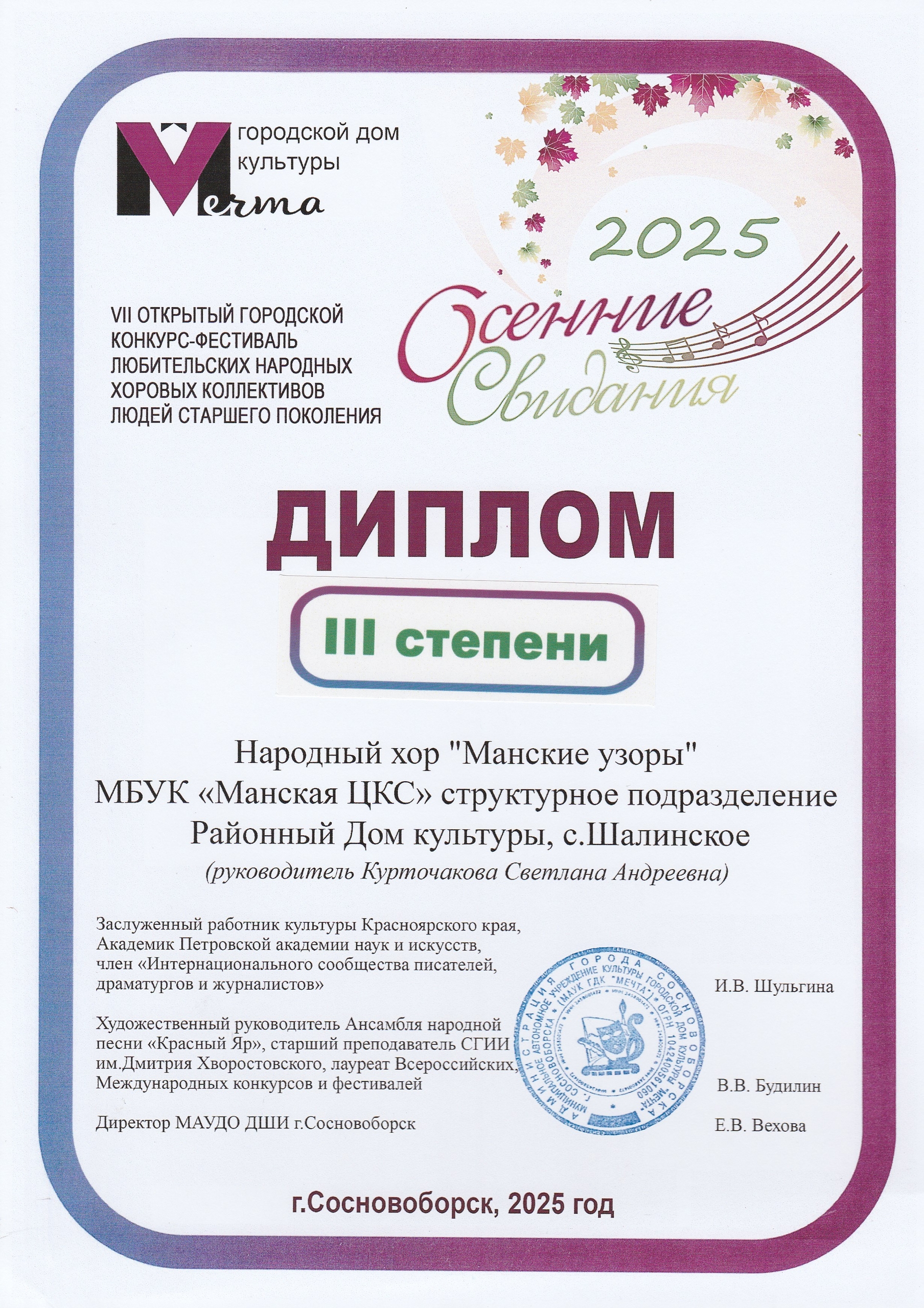 Унылая пора! Очей очарованье!Приятна мне твоя прощальная краса —Люблю я пышное природы увяданье,В багрец и в золото одетые леса… 12 сентября в селе Шалинское Манского района прошёл первый Районный фестиваль «Дары осени 2025». Жители села и ближайших деревень собрались на площади возле районного Дома культуры, чтобы встретить начало осени, поделиться своим творчеством и провести время с пользой. Несмотря на …