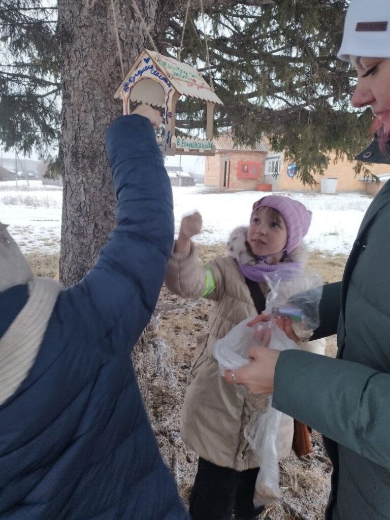 Когда все работы были готовы и краска подсохла, участники мастер-класса вышли на улицу. С радостью и энтузиазмом дети развесили кормушки возле здания Дома Культуры и на деревьях рядом. Вскоре в воздухе зазвучало весёлое птичье щебетание — будто благодарность от тех, ради кого и был устроен праздник. Ребята наполнили кормушки зерном, семечками и крупами, а сотрудники СДК рассказали, как правильно заботиться о птицах зимой.