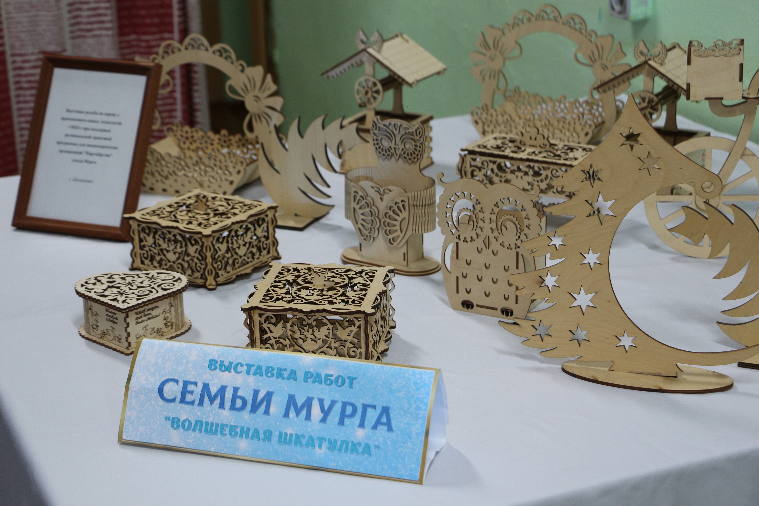 Но концерты – это не только музыка. Перед началом представления гостей ждали две увлекательные творческие выставки. Первая выставка называлась «Волшебная шкатулка», здесь посетители могли полюбоваться декоративными изделиями из дерева, выполненными семьёй Мурга на станке с числовым программным управлением. Эти уникальные произведения сочетают искусство резьбы и современные технологии, превращаясь в настоящие шедевры ручной работы.