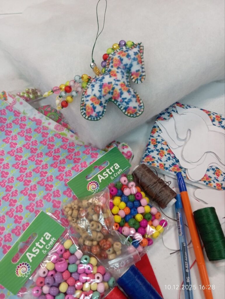 Изготовление лошадки стало не только увлекательным занятием, но и возможностью для общения и обмена опытом. Используя простые материалы — фетр, вату, нитки, иголки и бусинки для украшения, — участники шаг за шагом создавали свои уникальные работы.