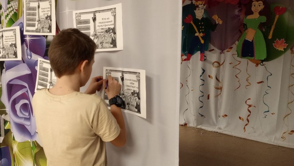Далее участники мероприятия играли в игры и конкурсы такие как: “Вопрос – ответ”, “Угадай породу”, “Мультипликационный пазл”. Мероприятие завершилось интересным конкурсом, ребятам нужно было нарисовать одной рукой, собаку своей мечты, рисунки получились забавные, а некоторые даже красивые, по которым легко можно было узнать любимого домашнего питомца участника.
