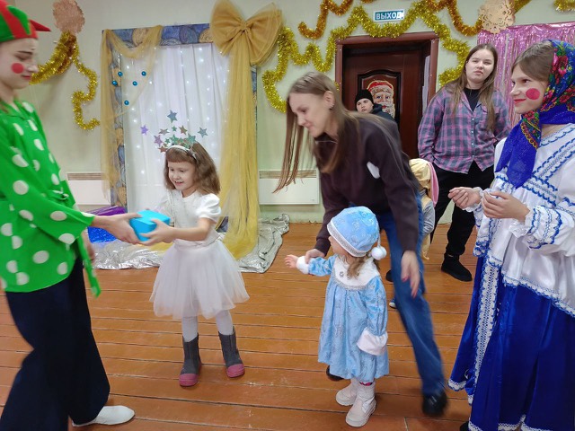 Праздник начался с появления самой настоящей Снегурочки! В её лёгких, искрящихся снежинках наряде и доброй улыбке чувствовалась магия зимы. Дети сразу же окружили её дружным хороводом, радостно знакомясь и делясь предпраздничным настроением. Снегурочка с интересом расспрашивала малышей об их самых заветных желаниях и любимых подарках, а взамен познакомила всех со своими верными друзьями — озорным Петрушкой и яркой, узорчатой Матрёшкой.